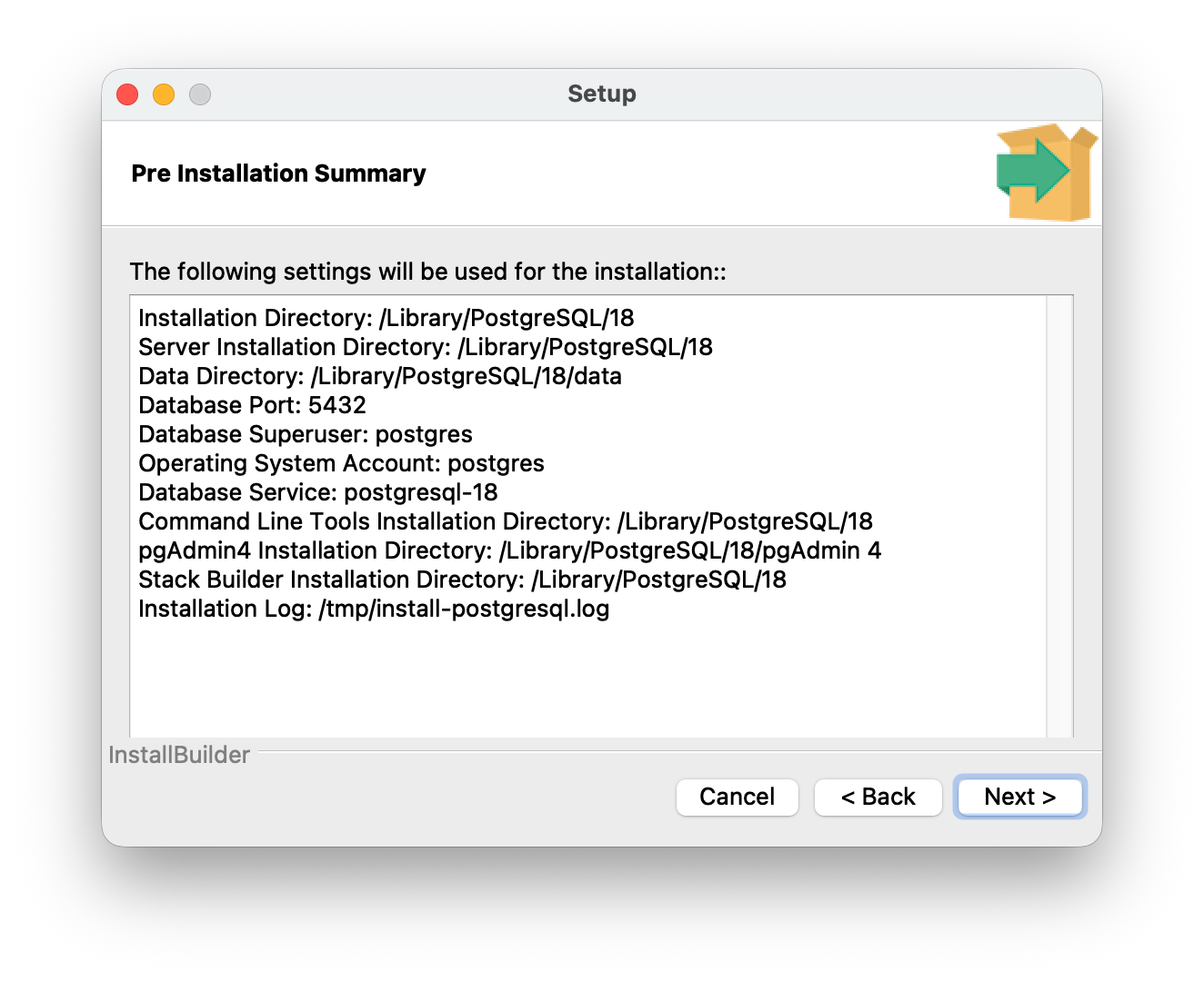 - Lade den Installer von postgresql.org/download/macosx herunter (beim Erstellen der Unterlagen Version 18)