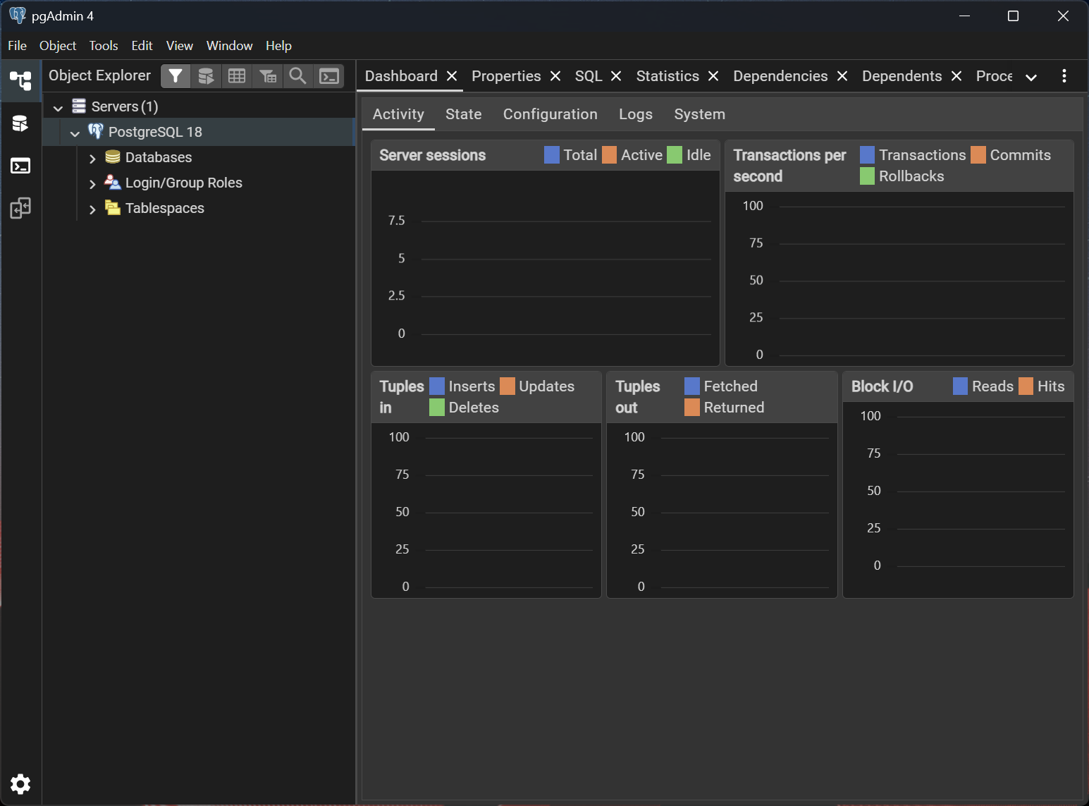 - Windows: Task-Manager → Dienste → "postgresql-x64-18"