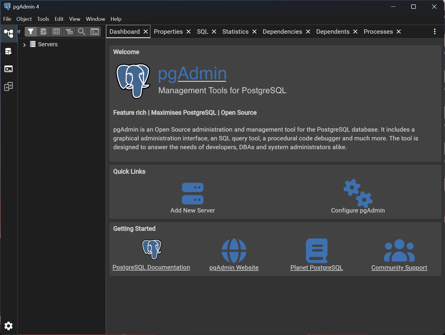 - pgAdmin 4 öffnen