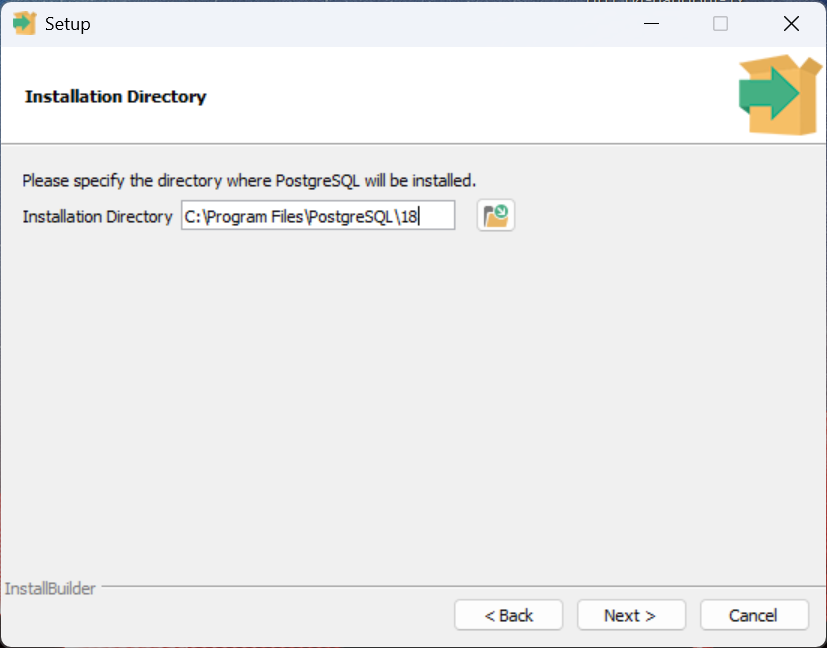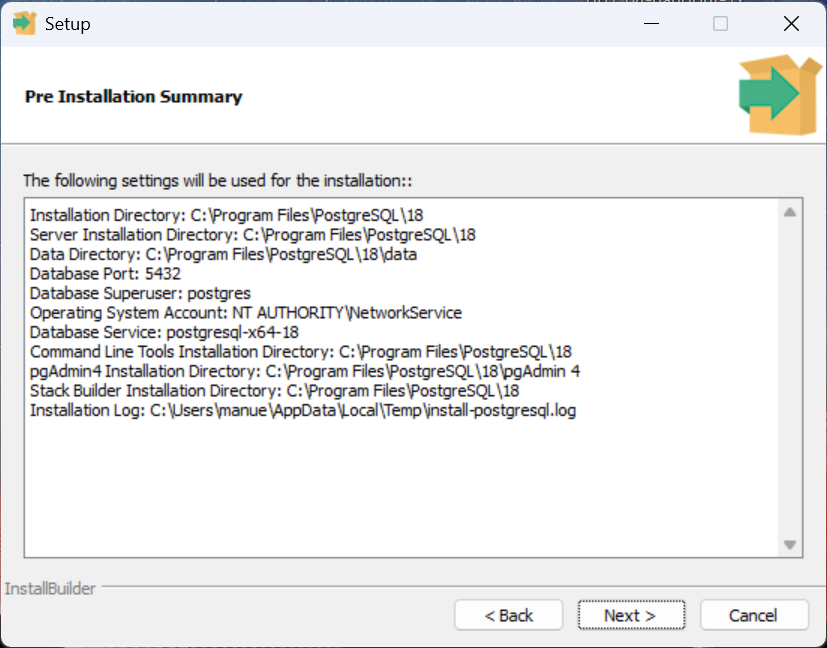 - Lade den Installer von postgresql.org/download/windows herunter (beim Erstellen der Unterlagen Version 18)